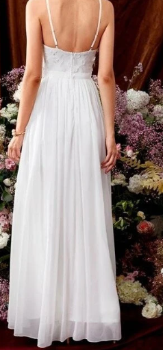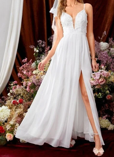 Floral Appliques Mesh Overlay Cami Wedding Dress|Enchanting Floral Dreams|Floral Fields of Beauty|Blossoming Elegance|Effortless Grace