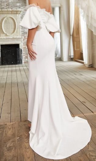 Off Shoulder Contrast Mesh Mermaid Hem Wedding Dress|Enthralling Mermaid Wedding Dress|Contrast Mesh Mermaid Wedding Dress